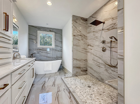 On the third floor, you’ll find a serene primary suite with a custom closet, city views, and a spa-inspired bath featuring marble tile, heated floors, a rain shower, and elegant gold finishes.