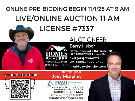 Terms: 10% buyer’s premium added to final bid to establish total purchase price. $15,000 partial down payment due day of auction. Balance due by November 26, 2025.