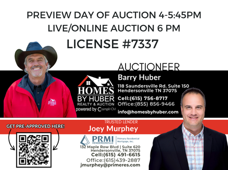 Terms: 10% buyer’s premium added to final bid to establish total purchase price. $15,000 partial down payment required day of auction. Balance due at closing on or before November 12, 2025.